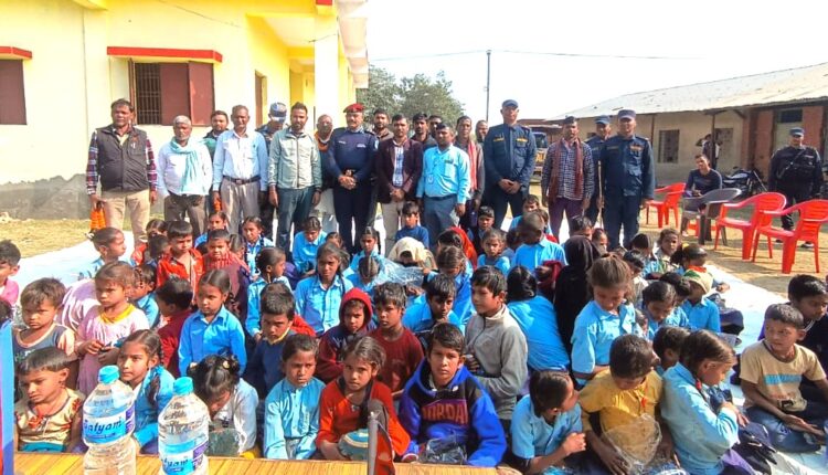 वीरगञ्ज : पकहाँमैनपुर गाउँपालिकामा संस्था समाज परिवर्तन नेपालको आयोजनामा स्विटर, टोपी र ट्रेक सुट बितरण गरिएको छ । कार्यक्रम संस्थाका अध्यक्ष अकलेश कुमार साहको अध्यक्षता तथा जिल्ला प्रहरी कार्यालय पर्साका प्रमुख प्रहरी उपरीक्षक कुमोद ढुङ्गेलको प्रमुख अतिथ्यमा सम्पन्न भएको हो।