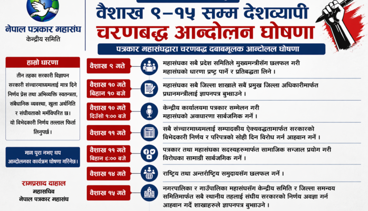 पत्रकार महासंघद्वारा विज्ञापन नीतिविरुद्ध वैशाख ९–१५ सम्म देशव्यापी चरणबद्ध आन्दोलन घोषणा