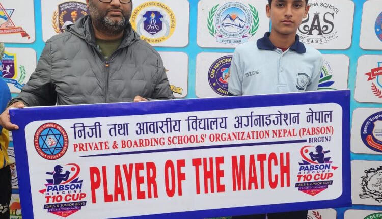 वीरगञ्ज। निजी तथा आवासीय विद्यालय संगठन (प्याब्सन) वीरगञ्जको आयोजनामा जारी दोस्रो संस्करणको प्याब्सन टी–१० गर्ल्स एण्ड जुनियर बोयज क्रिकेट प्रतियोगिता अन्तर्गत चार वटा खेल सम्पन्न भएका छन्।