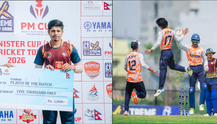 प्रधानमन्त्री कप (PM Cup) २०२६ अन्तर्गत खेलिएको रोमाञ्चक खेलमा नेपाल APF क्लब र लुम्बिनी प्रदेशबीचको भिडन्त बराबरीमा सकिएपछि सुपर ओभरमार्फत लुम्बिनी प्रदेश ८ रनले विजयी भएको छ।