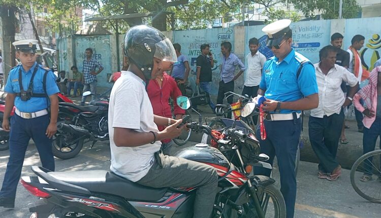 बिरगंजको घन्टाघर क्षेत्रमा ट्राफिक प्रहरीको कडा चेकिङ : २० जना सवारी चालकलाई कारबाही