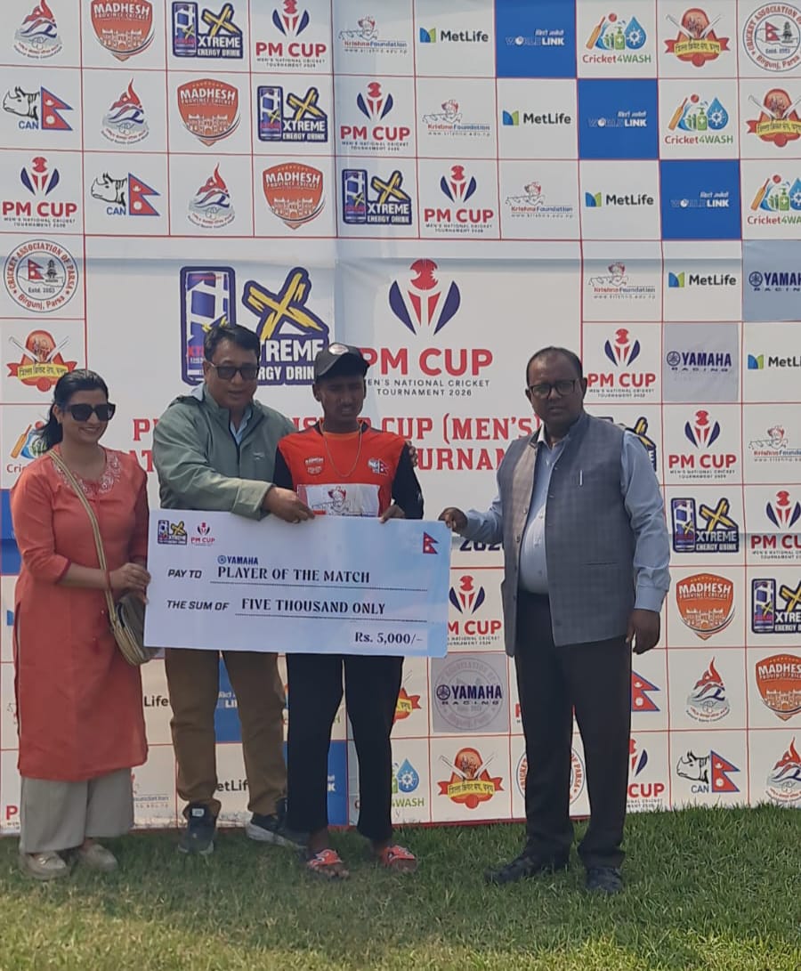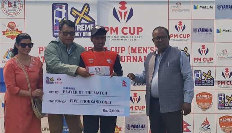 वीरगन्ज — प्रधानमन्त्री कप पुरुष राष्ट्रिय क्रिकेट प्रतियोगितामा मधेस प्रदेशले आफ्नो अपराजित यात्रा कायम राख्दै कर्णाली प्रदेशलाई पाँच विकेटले पराजित गरेको छ। जनकपुरस्थित रामजानकी रंगशालामा कर्णालीले दिएको १३० रनको लक्ष्य मधेसले २४।५ ओभरमा पाँच विकेटको क्षतिमा पूरा गर्दै प्रतियोगितामा लगातार तेस्रो जित हात पारेको हो।