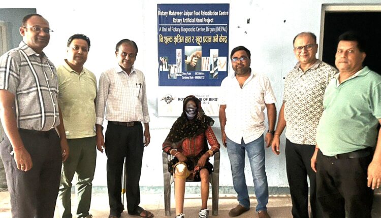 माहेश्वरी समाज बिरगंज र रोटरी क्लबको सहकार्यमा अपांग महिलालाई निःशुल्क कृत्रिम खुट्टा प्रदान