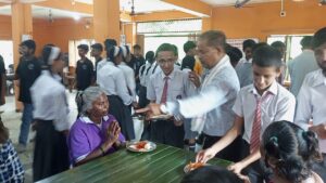 विद्यार्थीहरूले खाजाको पैसाबाट खुवाए मानवसेवा आश्रमका आमाबुबालाई खाजा