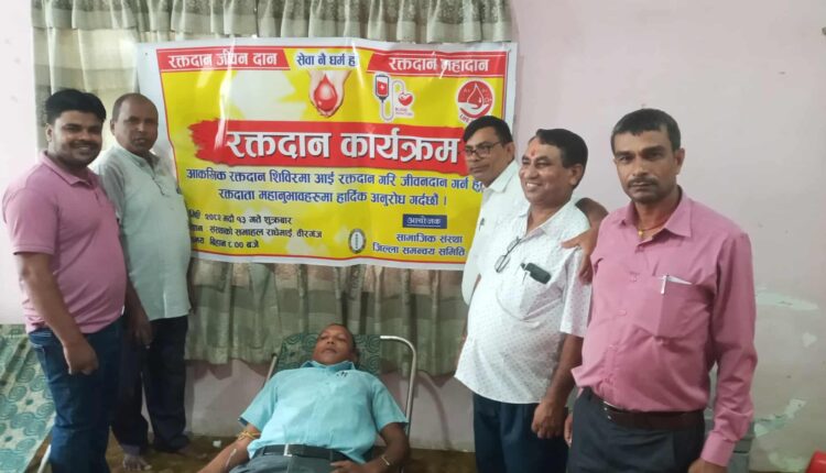पर्सा — सामाजिक संस्था जिल्ला समन्वय समिति (NGOCC) पर्साले शुक्रबार वीरगञ्जमा आकस्मिक खुल्ला रक्तदान कार्यक्रम आयोजना गरेको छ। “रक्तदान जीवन दान, सेवा नै धर्म” भन्ने नारासहित सम्पन्न कार्यक्रममा चार महिला सहित १७ जनाले रगतदान गरेका हुन्।