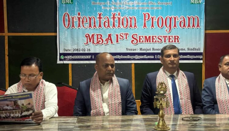 सिन्धुली । वीरगन्ज मल्टीपल कलेजमा अध्ययनरत एम.बि.ए. (MBA) प्रथम सेमेस्टरका विद्यार्थीहरुको लागि एक विशेष ओरिएन्टेसन कार्यक्रम सिन्धुली जिल्लाको मन्जरी रिसोर्टमा सफलतापूर्वक सम्पन्न भएको छ।