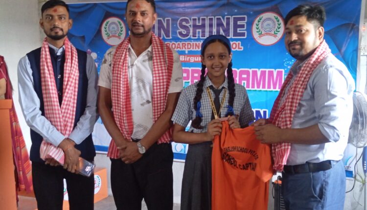 सनसाइन स्कुलमा नयाँ भर्ना भएका विद्यार्थीहरुको भब्य स्वागत तथा हाउस क्याप्टेनलाई टिसर्ट र ब्याच वितरण