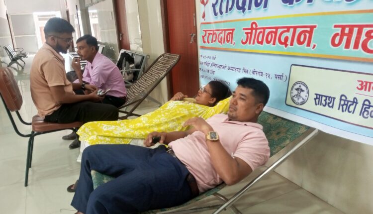 साउथ सिटी हिमाल हस्पिटलको आयोजनामा रक्तदान सम्पन्न, १२ जना महिला सहित ४१ जनाले गरे रक्तदान