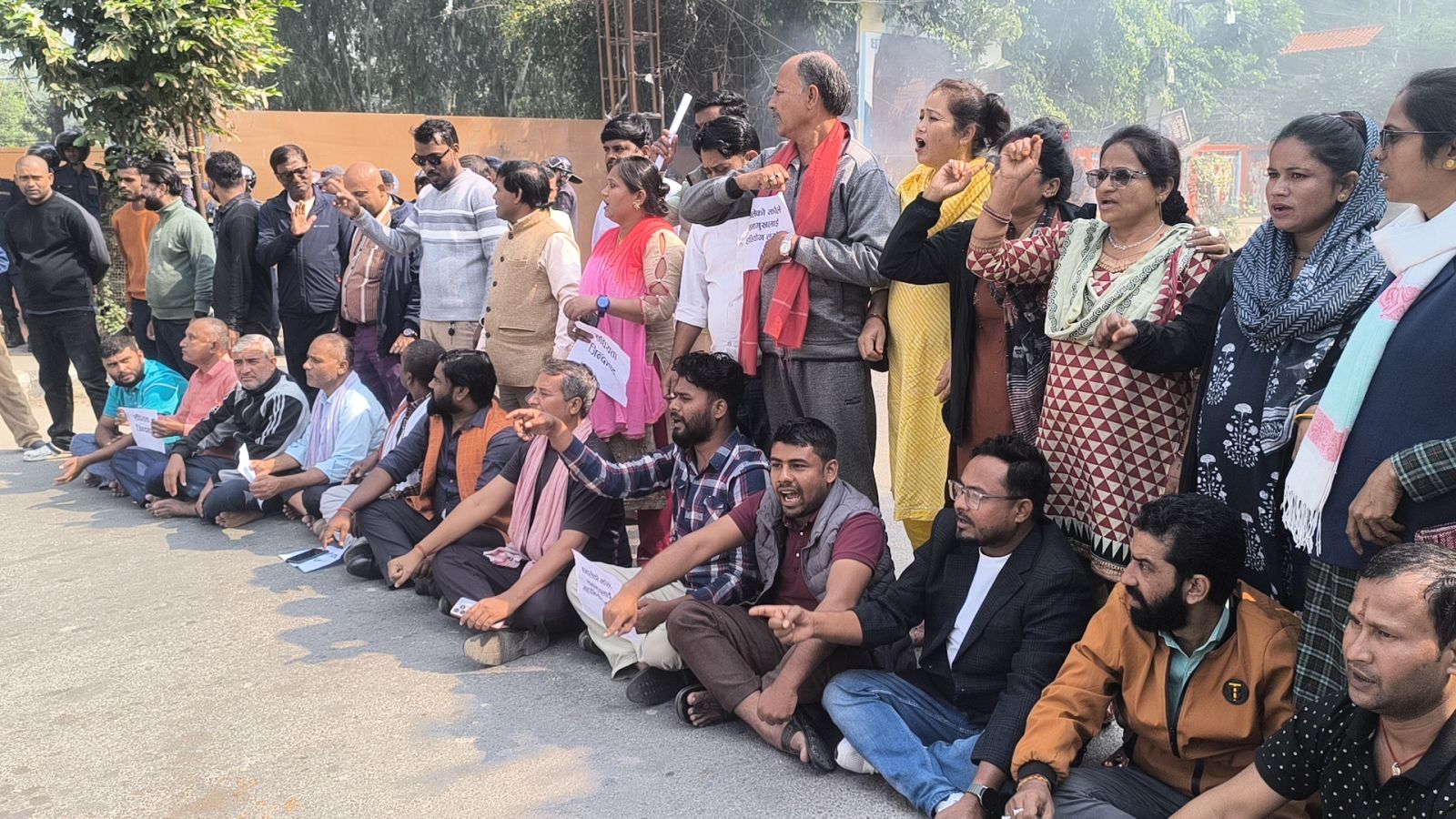 सांसदहरूलाई मधेस भवन प्रवेश गर्न नदिएपछि उनीहरू मुख्य गेटमै बसेका छन्। मुख्यमन्त्री यादवलाई भवन प्रवेश गर्न नदिनका लागि सांसदसहित कार्यकर्ताहरूले गेटमा टायर बालेर प्रदर्शन सञ्चालन गरेका छन्।