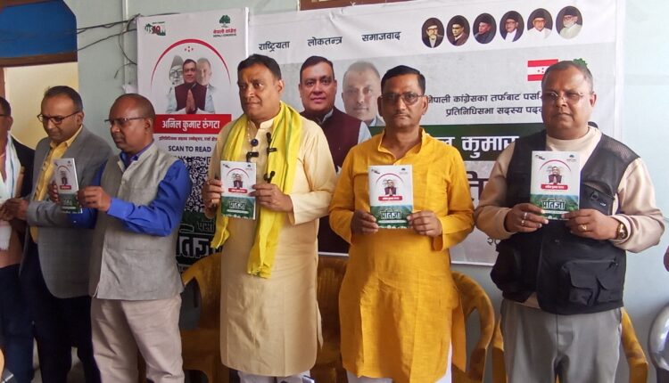 वीरगञ्ज, पर्सा – प्रतिनिधिसभा सदस्य निर्वाचनको अवसरमा पर्सा क्षेत्र नम्बर–१ का नेपाली कांग्रेसका उम्मेदवार अनिल कुमार रुगटा ले आफ्नो प्रतिज्ञापत्र सार्वजनिक गरेका छन्।