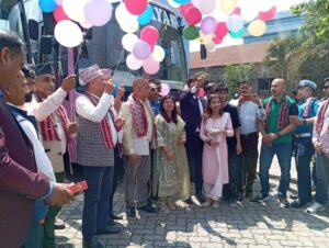 ५० बर्ष लामो समयदेखी सेवा दिदैँ आएको ओम बिनायक ट्राभल्सको नयाँ सुविधा समपन्न बस संचाल्नमा, सञ्चालक पौडेल सम्मानित