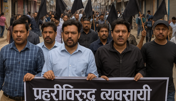 व्यवसायीहरूले आज दिउँसो १२ बजेसम्म पसल बन्द गरेका छन् । प्रहरीले गत असोज ३१ गते अवैधरूपमा छापा मारेको भन्दै धनुषाका प्रहरी नायब उपरीक्षक गणेशबहादुर बम र घुमुवा प्रहरी सहायक निरीक्षक मनोजकुमार यादवलगायतलाई कारबाही गर्नुपर्ने माग गर्दै आएका छन् ।