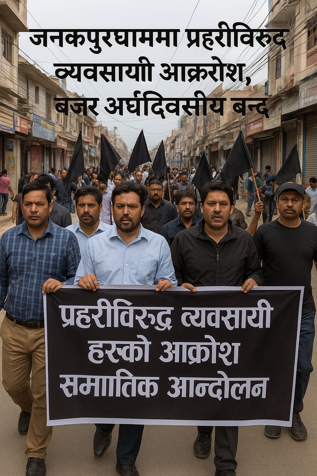 जनकपुरधाम — धनुषा प्रहरीविरुद्ध जनकपुरधामको बजार बन्द गरिएको छ । प्रहरीले अनाहकमा दुःख दिएको भन्दै व्यवसायीहरू विरोधमा उत्रिएका छन् । जनकपुर उद्योग वाणिज्य संघको आयोजनामा व्यवसायीहरूले आन्दोलनसमेत घोषणा गरेका छन् ।