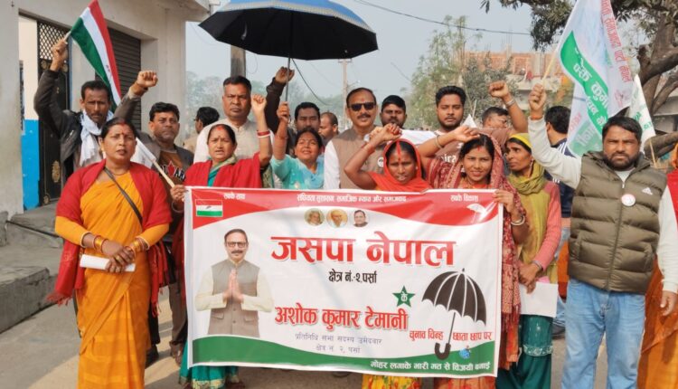 वीरगञ्ज, ११ फागुन । पर्सा निर्वाचन क्षेत्र नं. २ अन्तर्गत प्रतिनिधिसभा सदस्य उम्मेदवार अशोक कुमार टेमानीले आफ्नो चुनावी अभियानलाई तीव्र बनाउँदै वीरगञ्ज महानगरपालिका वडा नं. १ मा सशक्त घरदैलो तथा अगुवा भेला कार्यक्रम सम्पन्न गरेका छन्। जनता समाजवादी पार्टी, नेपाल (जसपा) का तर्फबाट उम्मेदवारी दिएका टेमानीले मतदातासँग प्रत्यक्ष संवाद गर्दै स्थानीय समस्यालाई आफ्नो मुख्य एजेन्डा बनाउने प्रतिबद्धता व्यक्त गरे।