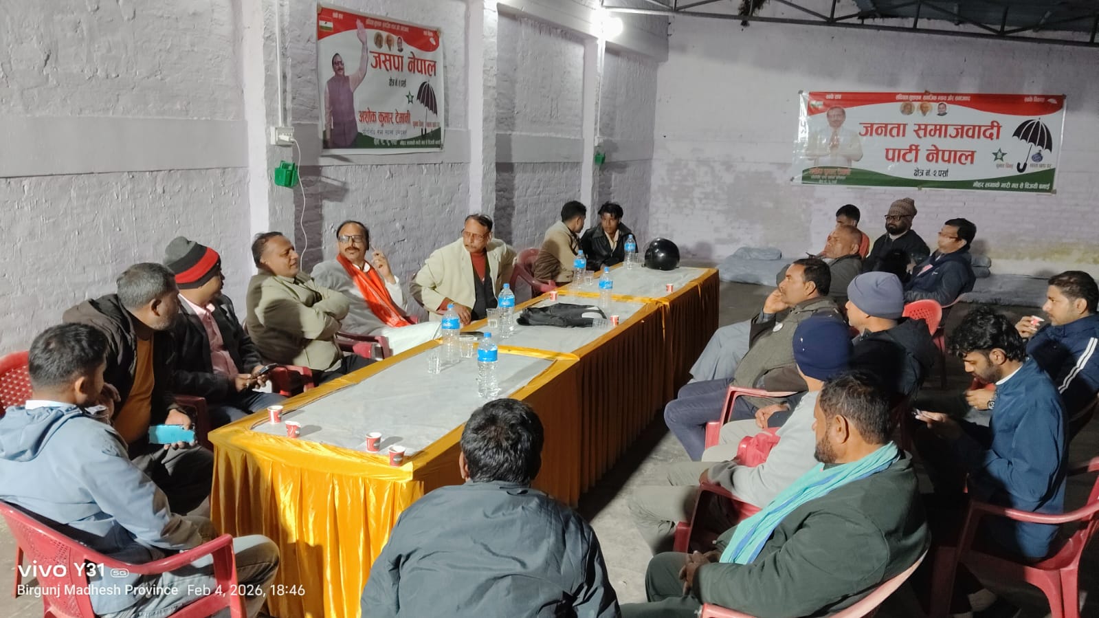 वीरगंज (पर्सा), २२ माघ — वीरगंज महानगरपालिका वडा नं. १० स्थित जनता समाजवादी पार्टी (जसपा) कार्यालयमा मधेशवादी दलका नेता तथा कार्यकर्ताको उल्लेखनीय उपस्थितिमा भेला सम्पन्न भएको छ। निर्वाचनअगाडि मधेशवादी शक्तिहरूलाई एकै मञ्चमा उभ्याउने उद्देश्यका साथ आयोजना गरिएको यस भेलाले पर्सामा मधेशवादी एकताको सन्देश प्रवाह गरेको छ।