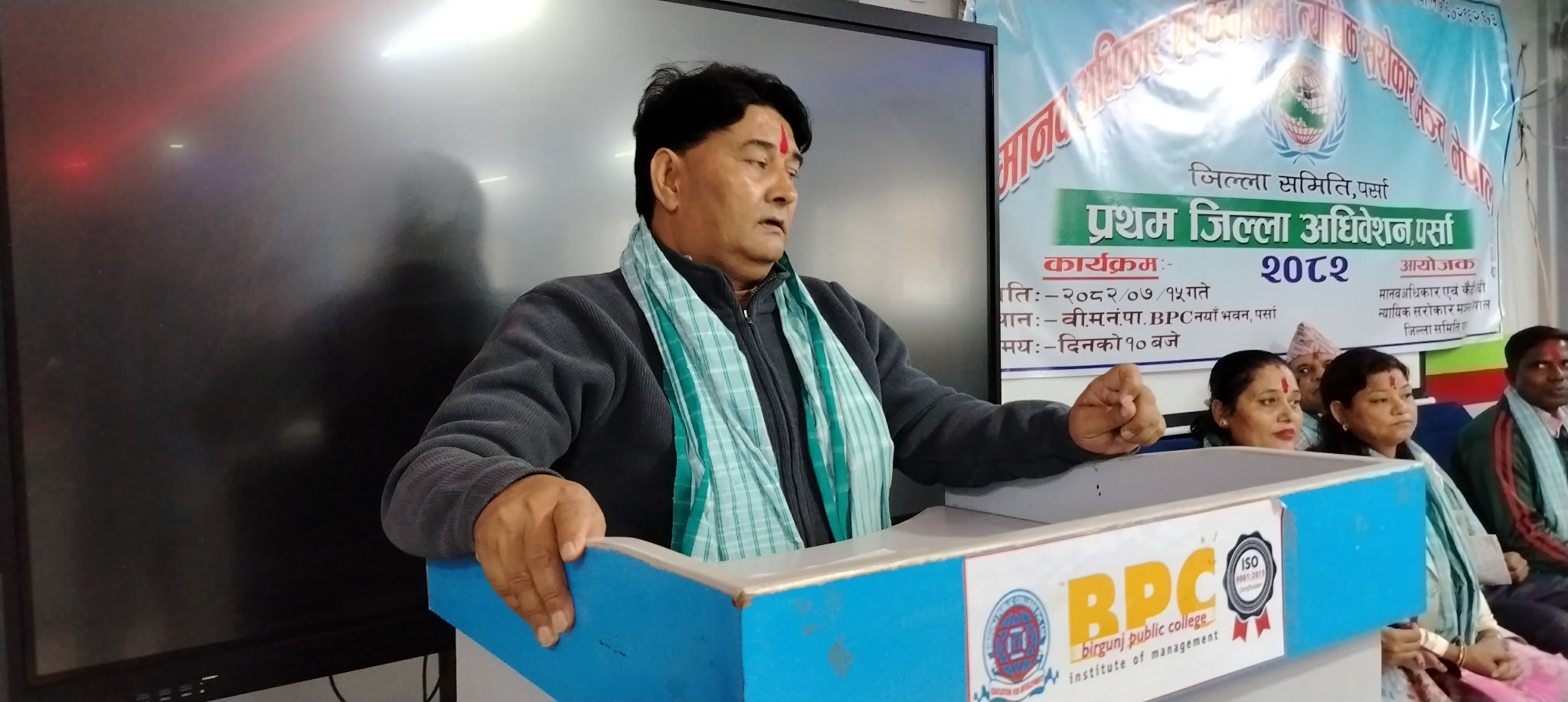 पर्सा — मनाव अधिकार एवं कैदी बन्दी न्यायिक सरोकार मञ्च नेपाल, पर्सा शाखाले आफ्नो प्रथम जिल्ला अधिवेशन सम्पन्न गरेको छ। उद्घाटन समारोह मञ्चका पर्सा जिल्ला संयोजक राजु बैठाको अध्यक्षता तथा केन्द्रिय अध्यक्ष लक्ष्मी कुमारी खाणको प्रमुख आतिथ्यमा सम्पन्न भएको थियो।