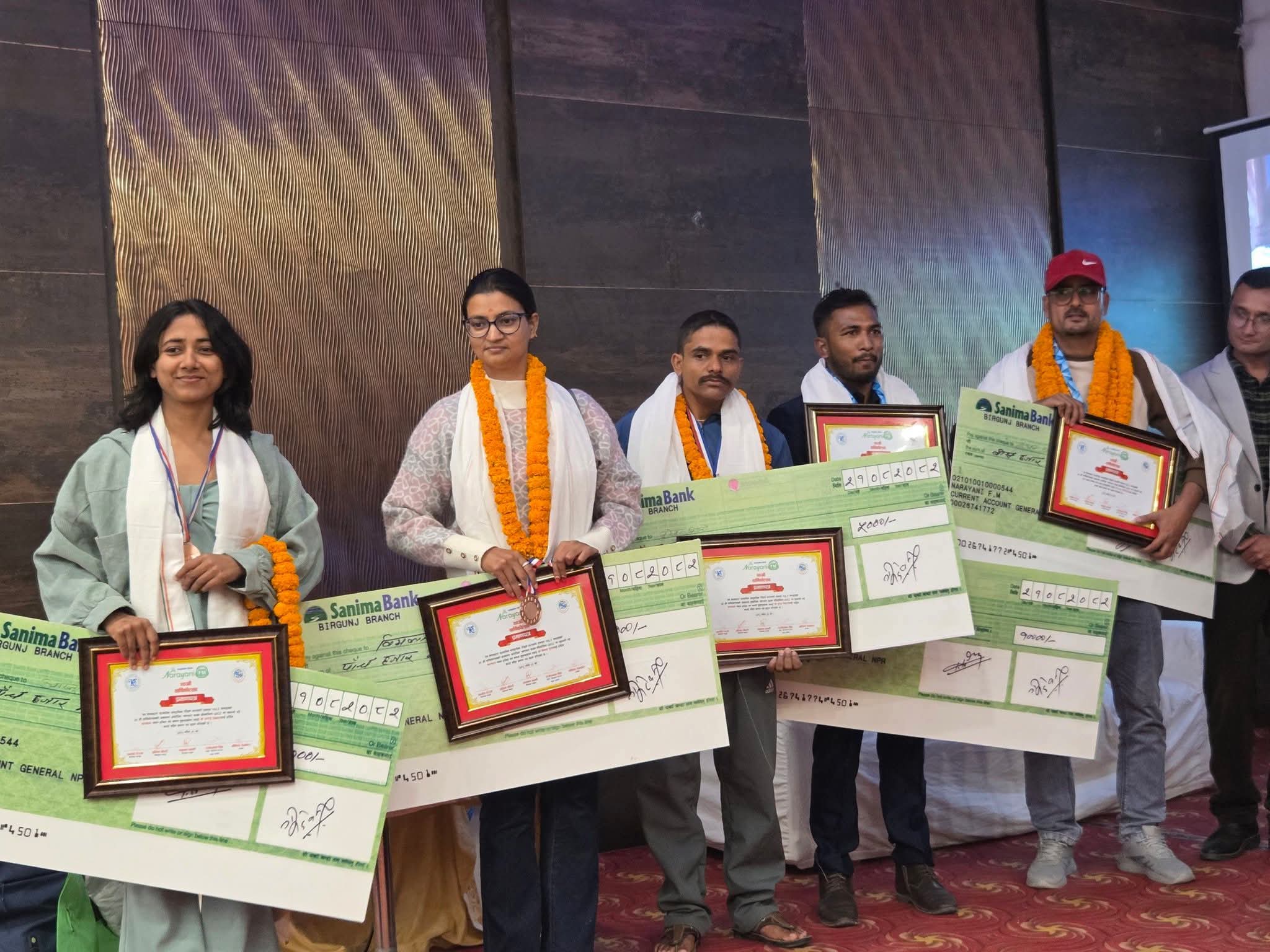 प्रथम हुने तिमिल्सनाले नगद २०हजार, दुतिय हुने खरेलले नगद १५ हजार ,तृतिय हुने बिकले नगद १० हजार प्राप्त गरेका थिए । साथै सान्तावना पुरस्कार जितेका बिडारी, गुप्ता र देवकोटाले जनही नगद ५हजार प्राप्त गरेका थिए । बिजयी प्रतियोगिहरुलाई कार्यक्रमका प्रमुख अतिथी राजेशमान सिंहले पुरस्कार तथा मेडल प्रदान गरेका थिए ।
