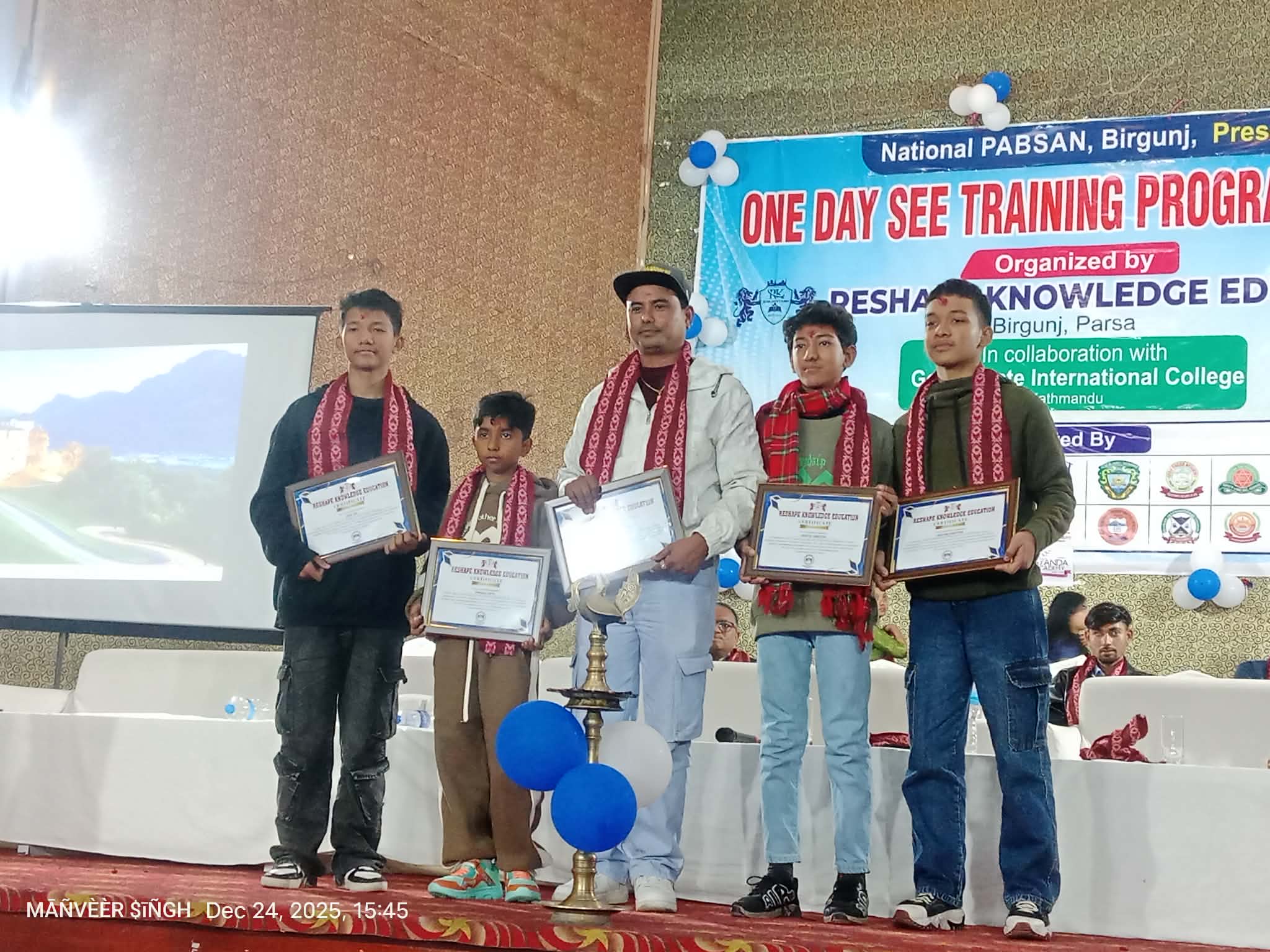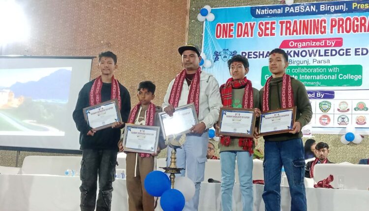नेसनल प्याब्सन पर्सा वीरगञ्जद्वारा एकदिने एसईई ट्रेनिङ सम्पन्न, स्वर्ण विजेता खेलाडी सम्मानित