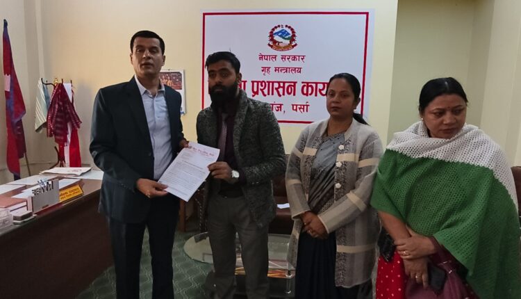 परिषद्ले आइतबार पर्साका प्रमुख जिल्ला अधिकारी भोला दाहालमार्फत प्रधानमन्त्री तथा मन्त्रिपरिषद्को कार्यालय सिंहदरबारलाई सम्बोधन गरी विस्तृत ज्ञापन पत्र बुझाएको छ ।