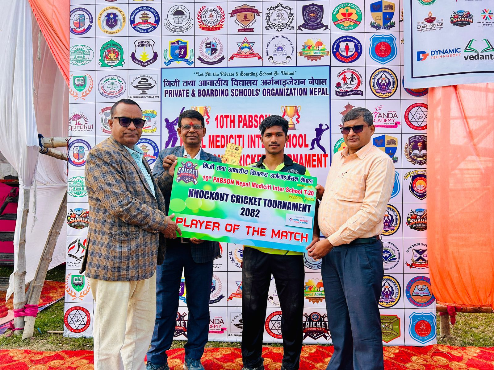 त्यसैगरी, अन्तिम खेलमा डिएभी र ज्ञान ज्योति माविबीच खेल सम्पन्न भयो। टस जितेर बलिङ रोजेको डिएभीले ज्ञान ज्योति माविलाई निर्धारित ओभरमा ८ विकेटको क्षतिमा ७९ रनमा सीमित गर्यो। जवाफमा डिएभीले १३.४ ओभरमै ४ विकेट गुमाउँदै लक्ष्य पूरा गर्दै ६ विकेटको जित हात पार्यो।
