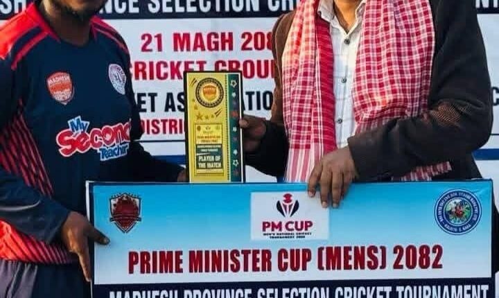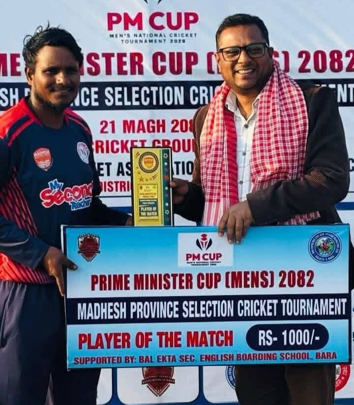 उत्कृष्ट ब्याटिङ प्रदर्शनका कारण आकिब अन्सारी ‘प्लेयर अफ द म्याच’ घोषित भए।