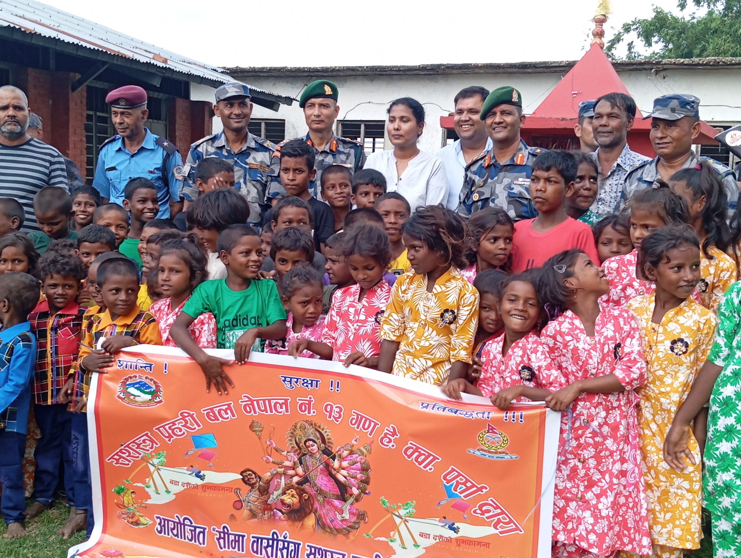 बडादशैंको खुशी बाँड्दै सशस्त्र प्रहरी, ९० बालबालिकाले पाए न्यानो कपडा
