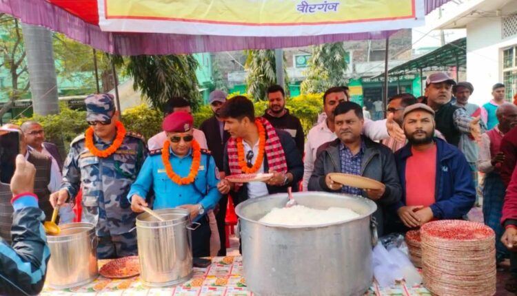 आजको निशुल्क भोजन शिविरको प्रमुख अतिथी पर्साका प्रमुख जिल्ला अधिकार गणेश अर्यालको आतिथ्यमा एवम् विशिष्ट अतिथीमा सहायक जिल्ला अधिकार ,जिल्ला प्रहरी कार्यालय पर्साका प्रमुख एसपी। गौतम मिश्र,सस्त्र प्रहरी प्रमुख एसपी राधेश्याम धिमाल,बिरगंज युवा समाजका संस्थापक अध्यक्ष कमल चौगाई,सामुदायिक प्रहरी कुम्हालटोलका सचिव श्रवनबहादुर रायमाझी,नारायणी अस्पतालका प्रशासन प्रमुख डा। उदय नारायण सिंह,संचारकर्मी अभिलाष गुप्ता,निराजन साह,राज सराफ लगाएतकाहरुको उपस्थिति रहेको थियोे।