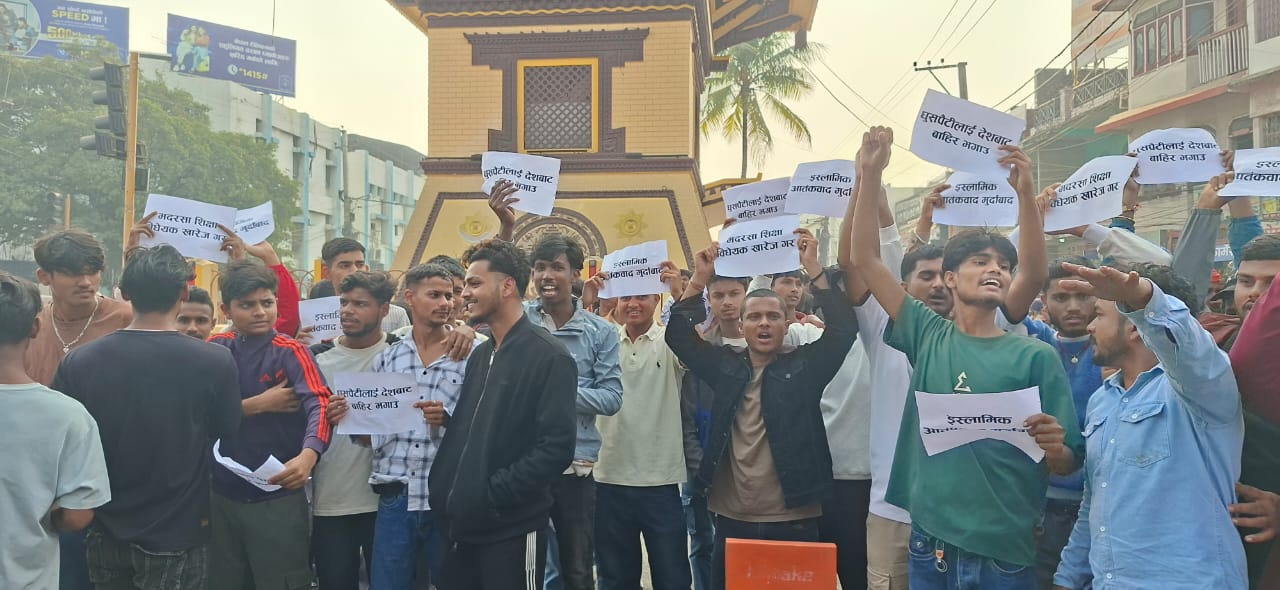 वीरगन्ज, पर्सा — मधेश प्रदेश सरकारले विगतमा अस्तित्वमै रहेको विवादित मदरस्सा शिक्षा बोर्डलाई पुनः सक्रिय बनाउने प्रयास गरिरहेको भन्दै विश्व हिन्दू परिषद् नेपालले बुधबार पर्सा जिल्लाको वीरगन्जमा प्रदर्शन गरेको छ। माईस्थानबाट विभिन्न नारा अंकित प्लेकार्डसहित सुरु गरिएको विरोध जुलुस नगरपरिक्रमा गर्दै घण्टाघरतिर अघि बढेको थियो।