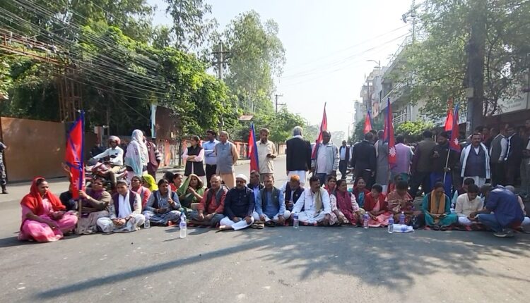 जनकपुरधामस्थित मधेश भवन अगाडि सडकमै बसेर सात राजनीतिक दलका सांसद, नेता तथा कार्यकर्ताहरु विहानैदेखि शान्तिपूर्ण प्रदर्शन गरिरहेका छन् ।