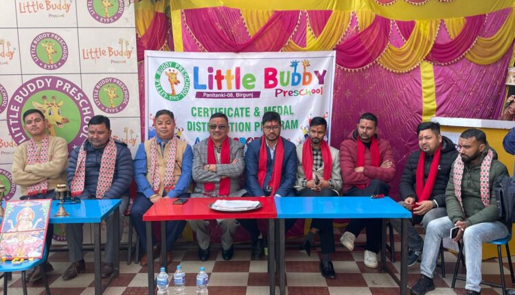 वीरगञ्ज । महानगरपालिका–८, पानीट्याङ्कीमा अवस्थित लिटिल बडी प्री–स्कुलले आयोजना गरेको वार्षिक खेलकुद सप्ताहको समापन कार्यक्रम भव्य रूपमा सम्पन्न भएको छ। कार्यक्रमका अवसरमा विभिन्न खेलकुद प्रतियोगितामा सहभागिता जनाएका तथा उत्कृष्ट प्रदर्शन गर्ने बालबालिकालाई विद्यालयको तर्फबाट मेडल र प्रमाणपत्र वितरण गरिएको थियो।