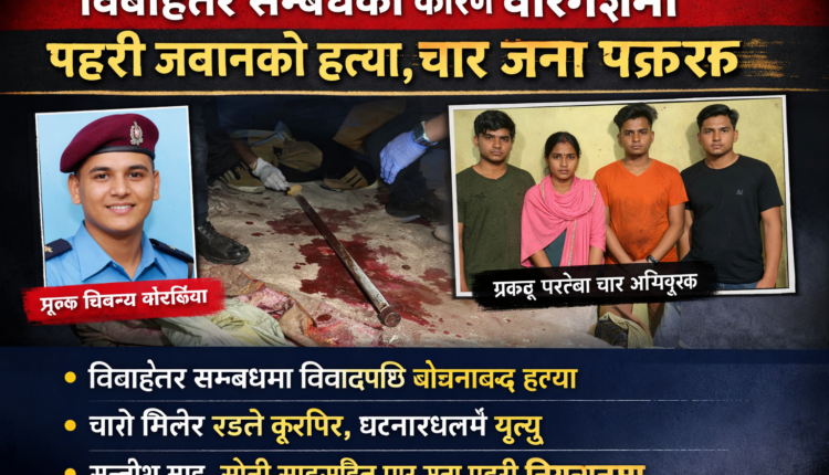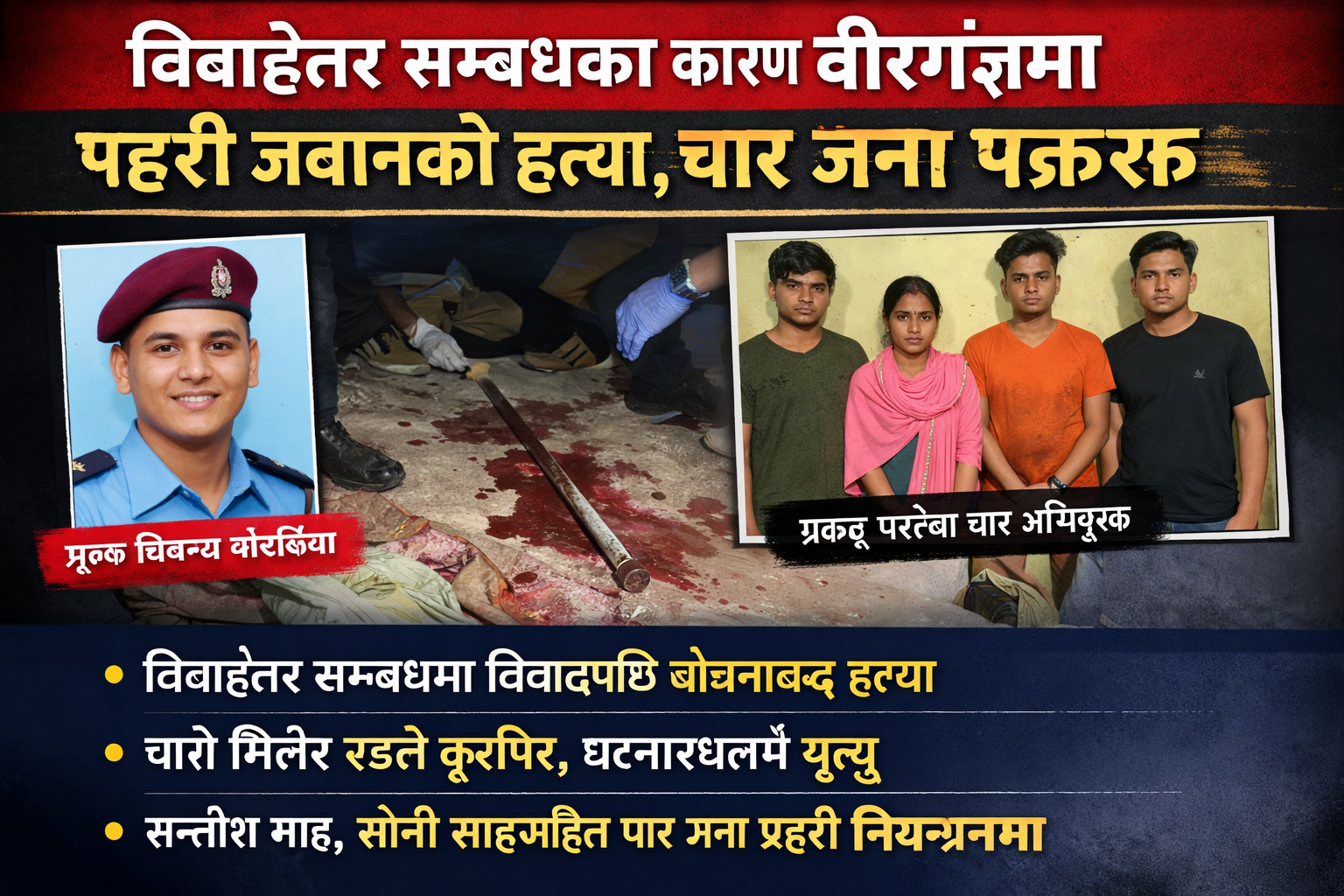 विवाहेतर सम्बन्धका कारण वीरगञ्जमा प्रहरी जवानको हत्या, चार जना पक्राउ