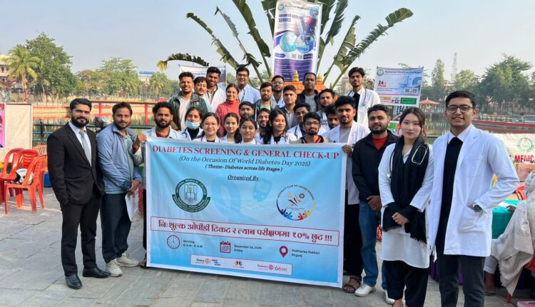 विश्व मधुमेह दिवस–२०२५ : नेशनल मेडिकल कलेज र रोटार्याक्ट क्लबद्वारा निःशुल्क स्वास्थ्य परीक्षण, १४१ जनाले गराए जाँच