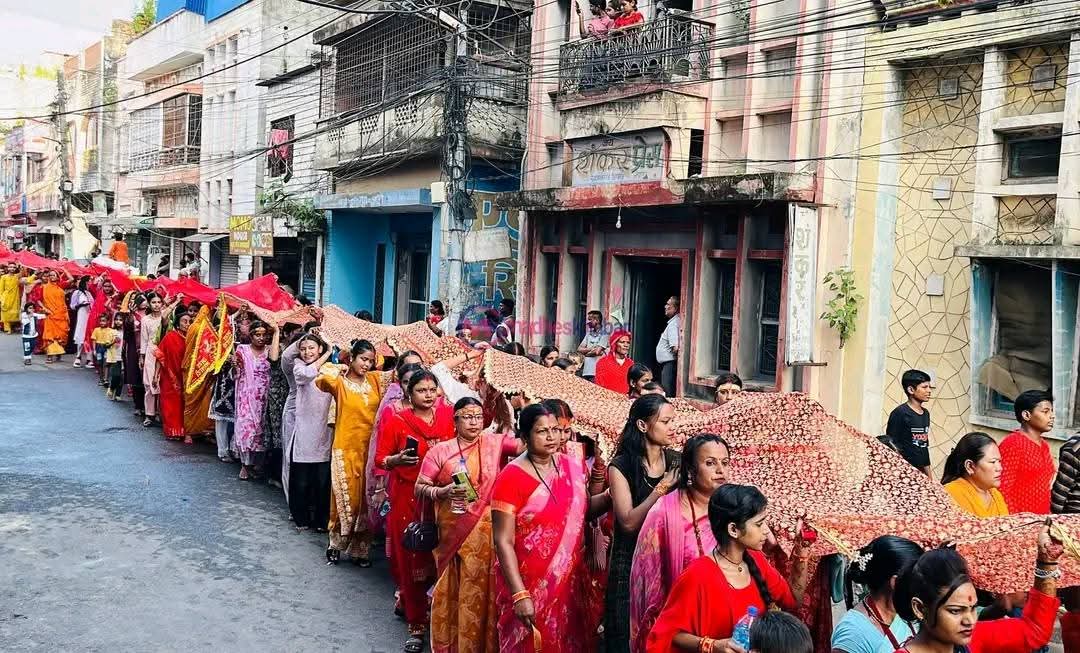 वीरगञ्जमा पहिलो पटक १५१ मिटर लामो चुनरी यात्रा सम्पन्न