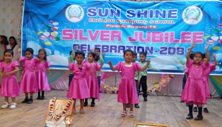 वीरगन्ज १४ स्थित सन साइन इंग्लिश बोर्डिङ स्कूलले शनिबार आफ्नो २५ औं वर्षगाँठ भव्यताका साथ मनाएको छ । आफ्नो २५ औं वर्षगाँठको अवसरमा विद्यालयले विभिन्न सांस्कृतिक कार्यक्रमको आयोजनागरी मनाएको छ ।
