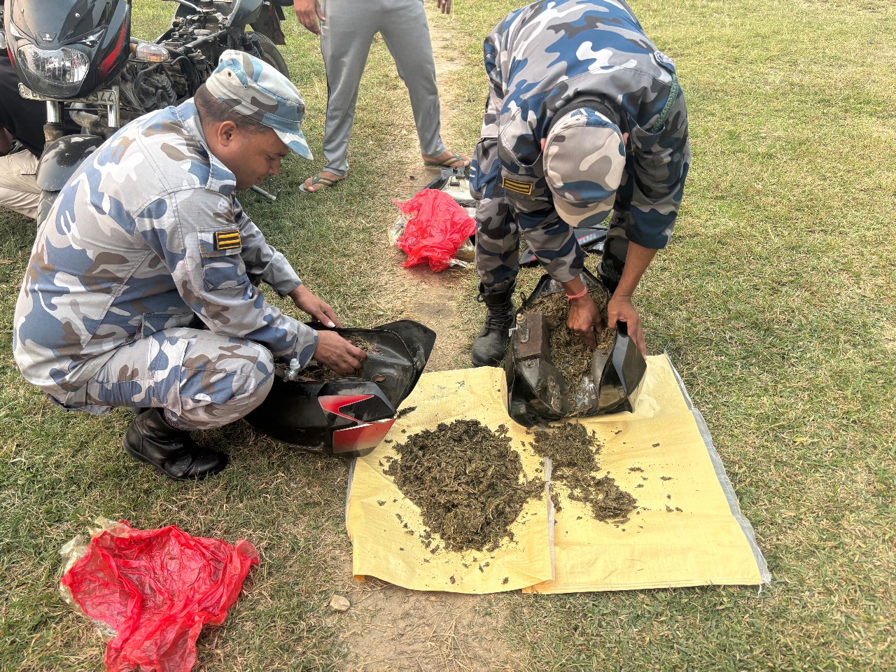 चेकजाँचका क्रममा मोटरसाइकलको ट्याङ्कीभित्र लुकाइछिपाइ राखिएको करिब ९ किलोग्राम लागुऔषध गाँजा फेला पारिएको सूचना अधिकारी योञ्जनले जानकारी दिए। बरामद गाँजा, दुवै मोटरसाइकल तथा १ थान एन्ड्रोइड मोबाइल फोनसहित आवश्यक कारबाहीका लागि सम्बन्धित निकायमा बुझाइएको सशस्त्र प्रहरी बलले जनाएको छ।