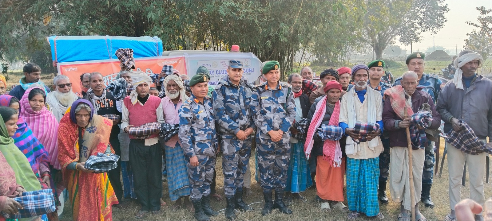 २५औँ सशस्त्र प्रहरी दिवस २०८२ को अवसरमा “सीमावासीसँग सशस्त्र प्रहरी” कार्यक्रम अन्तर्गत सीमावासीलाई सहयोग पुर्याउने उद्देश्यले सशस्त्र प्रहरी बल, नेपाल नं.१३ गण हेडक्वार्टर (हे.क्वा.) पर्साको आयोजनामा तथा रोटरी क्लब अफ वीरगञ्जको सहकार्यमा पर्सा जिल्लाका विभिन्न पालिकाका २०३ विपन्न घरपरिवारलाई न्यानो कपडा (पोलार) वितरण गरिएको छ।