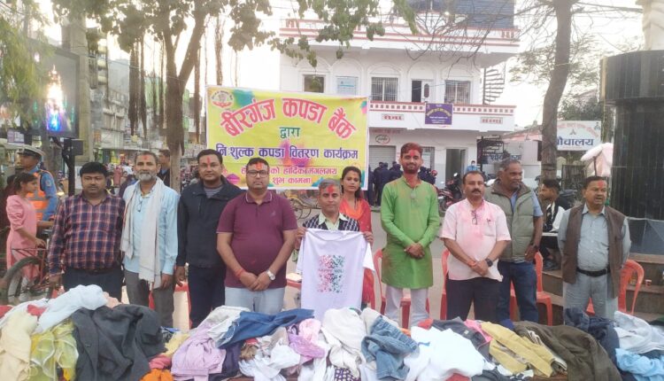 होलिको पूर्वसन्ध्यामा वीरगन्ज कपडा बैंक द्वारा घण्टाघरमा ८ सय थान नि:शुल्क कपडा वितरण